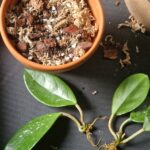 - Suosittelen istuttamaan kumipuun sille tarkoitettuun Fixus mixiin. Ficus mix on ravinteikas, ilmava mutta tasaisen kostea kasvualusta kaikille viikunoille. Sen avulla kumiviikunaa on helppo kastella. Istuta kumiviikuna aina pohjareiälliseen ruukkuun, josta ylimääräinen kasteluvesi pääsee valumaan pois. Koska viikunoiden juuret saavat helposti juurimädän liikakastelun seurauksena, olemme lisänneet ladattua biohiiltä fixus mixin mukaan; se ehkäisee juurimädän muodostumista yhdessä oikeanlaisen ruukun ja kastelurytmin kanssa.