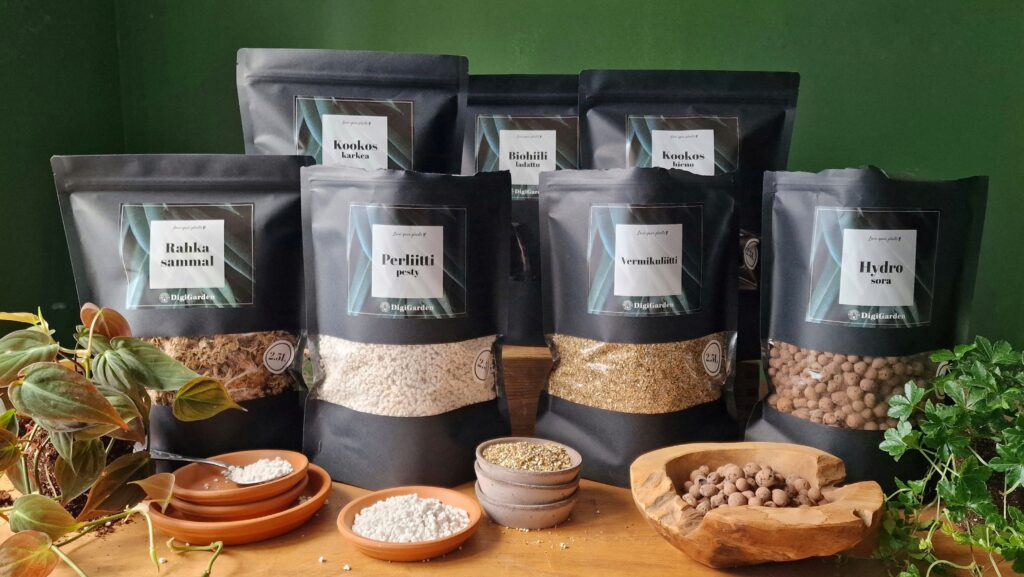 Tutustu DigiGardenin valmiisiin ja ilmaviin lajikohtaisiin kasvualustasekoituksiin täältä. Jos haluat sekoittaa kasvualustoja itse tai tuunata tavallista multaa ilmavammaksi, voit ostaa meiltä myös irtomyyntinä perliitti, kookosta, biohiiltä, kaarnaa jne. Tule tututumaan!